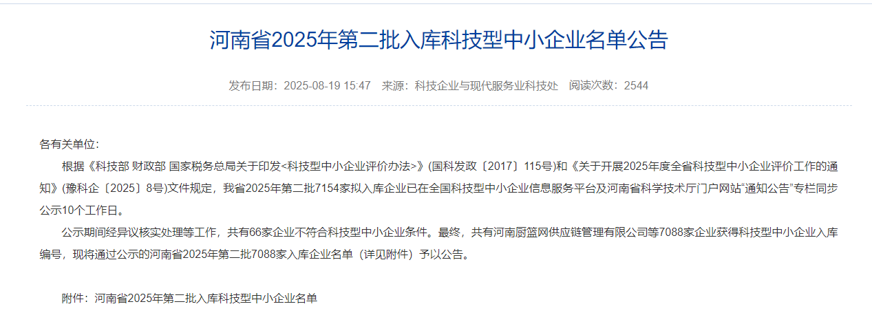 紧接着8月,该公司又成功入选国家级科技型中小企业。国家级科技型中小企业是指从事高新技术产品研发、生产和服务的中小企业群体,在提升科技创新能力、支撑经济可持续发展、扩大社会就业等方面发挥着重要作用。该荣誉的获得,充分体现了在孵企业开封市智汇堂数据科技有限公司在科技创新方面的卓越实力和发展潜力。