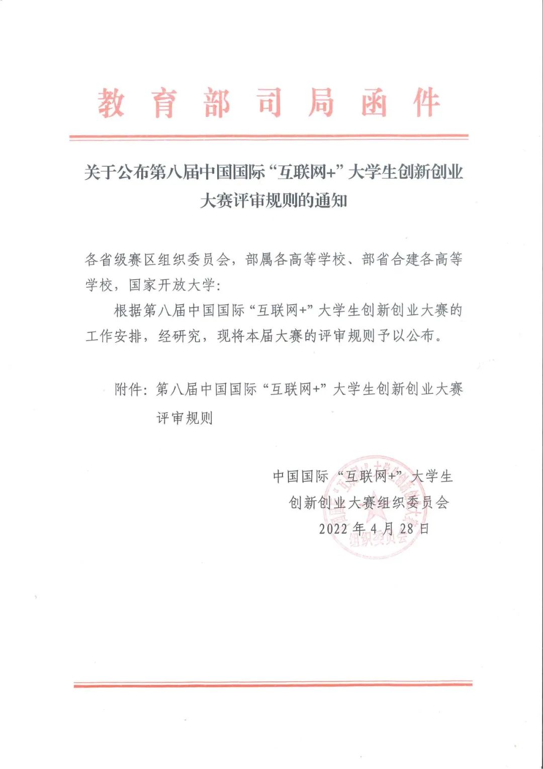 第八届中国国际“互联网+”大学生创新创业大赛评审规则