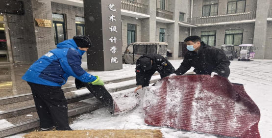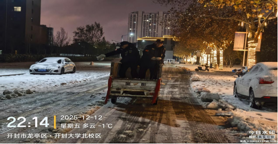 12月12日,我市遭遇持续强降雪天气,积雪深厚,道路结冰,为应对雨雪极端天气,后勤卫健办第一时间启动应急预案、统筹协调,深弘物业开封大学项目积极响应,项目经理吴文军率先带队,对主干道、出入口、台阶等重点区域进行铺设防滑垫、排查楼宇内门窗及水管等设备设施的防冻工作。组织管理人员放弃下班休息,夜间加班加点清理积雪、铲雪车持续作业至凌晨,同时对校园主干道路预先撒布融雪剂,防止夜间结冰。
