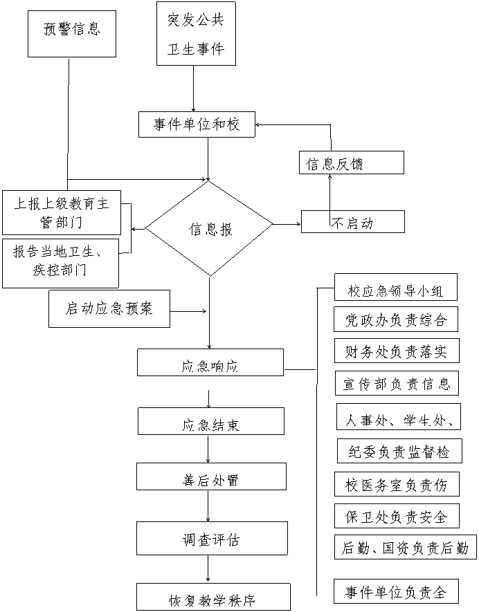 学校各单位成立突发公共卫生事件处置机构,校医务室协助各相关单位对突发公共卫生事件的日常预防和控制工作。