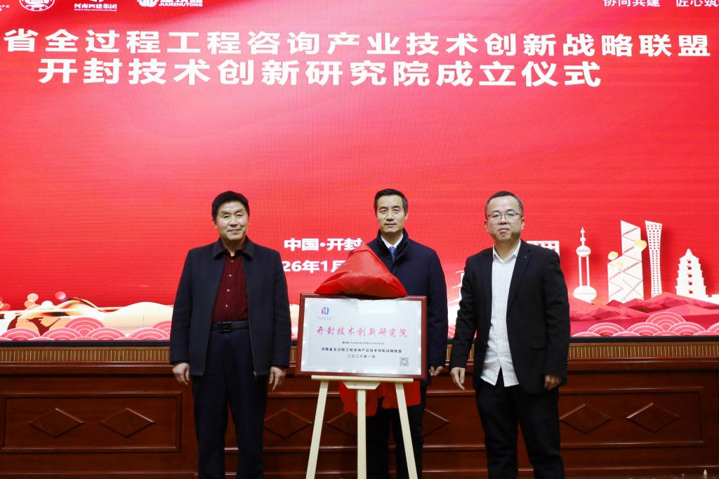 2026年1月22日下午,以“协同共建 匠心筑城”为主题的全过程工程咨询公益课堂第190期专家研讨会暨联盟开封技术创新研究院成立仪式举行。开封市住建局副局长杨军,开封大学党委委员、副校长万是明,河南四建集团副总裁代伟,联盟理事长杨明,开封大学土木建筑工程学院书记李军及院长赵书锋出席,会议由李军主持。