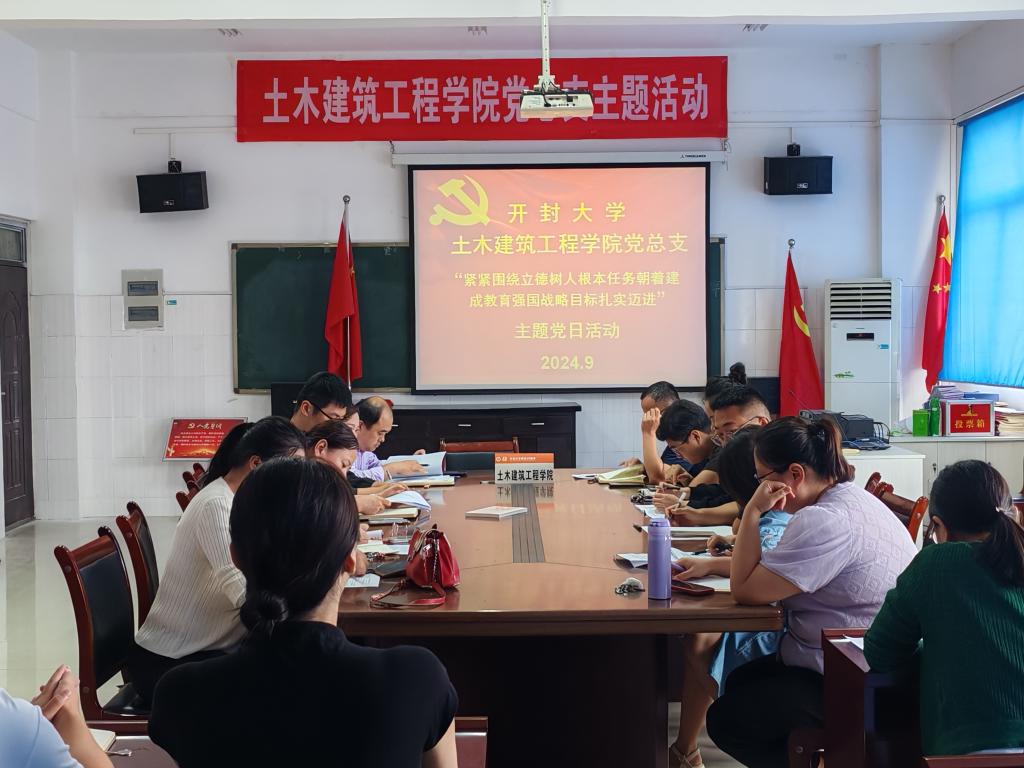 9月23日,土木建筑工程学院教工党支部开展“紧紧围绕立德树人根本任务 朝着建成教育强国战略目标扎实迈进”主题党日活动,土木建筑工程学院教工党支部全体党员参加会议。