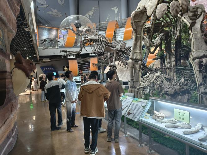 师生们有序参观了地球厅、恐龙厅、生物演化厅、矿产资源厅等多个主题展厅。在地球厅,珍贵的岩石标本与地质模型,同学们感受到地壳运动、地层的演变过程,认识到地质条件对土木工程建设的重要性。恐龙厅内,巨大的恐龙化石骨架引发同学们的热烈讨论,大家纷纷探讨起远古地质环境与现代工程建设环境的差异。