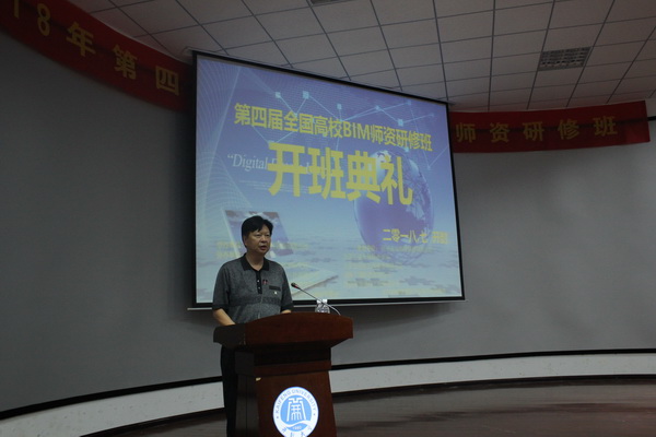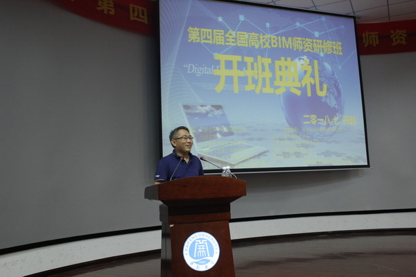 第四届BIM研修班校长朱溢镕发表了讲话。朱溢镕校长总结了前三届BIM培训班的组织过程、培训方式及取得的成果,并介绍了本次培训班的主要目的是提升建筑类院校师资能力,打造基于信息化 BIM 技术为主导的师资培训方案,满足高校师资信息化能力提升需求,旨在提升教师的BIM 项目专业实践能力及促进专业信息化教学改革落地。