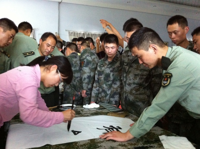 4月17日下午,公共艺术教研部赴驻汴某部基层连队开展书法培训活动,该活动也是部队开展的“改革强军”主题教育活动之一。我校教师毛成利、胡清让、刘晓、崔雅博及全体艺术教研部老师等参加了此次活动。