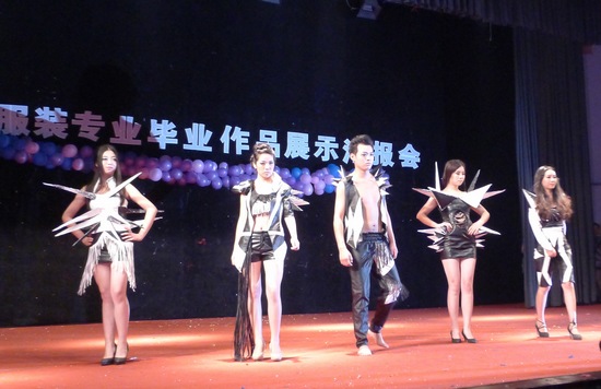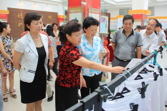 本站讯 6月8日上午,我校工艺美术学院2012届毕业生毕业设计作品展开幕式在我校校史馆举行。校党委书记张新梅、副校长赵辉、纪委书记范金梅、副校长耿广利以及相关部门领导出席开幕式并参观作品展。当日晚,工艺美术学院在金松大礼堂举办“服装设计专业2012届毕业作品暨‘双导师’制成果汇报展示”,校党委书记张新梅、副校长赵辉出席并观看展演。