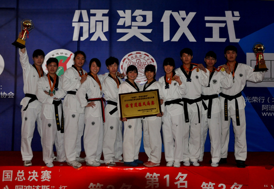 本站讯 12月11日至13日, 由中国大学生体育协会跆拳道分会主办的“2012年中国大学生跆拳道联赛总决赛”在山东科技职业学院体育馆举行。本次全国总决赛设有男女竞技个人赛、竞技团体赛和男女品势个人赛、团体赛、混双比赛五个项目,所有参赛选手均为华北、东北、西北、西南、华南、华东、华中七大分区赛前八名的运动员。