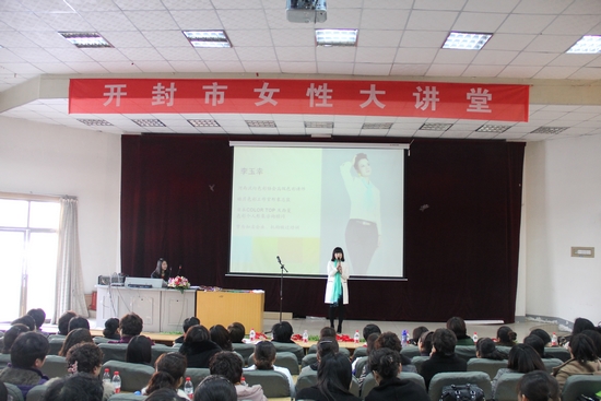 本次讲座邀请到了河南大学经济学教授耿明斋、河南服饰高级讲师李玉幸为大家做讲座。李玉幸老师以“事业中的优雅女性”为题目,探讨“美的话题”,解读服饰色彩,绽放女性优雅魅力,精彩的讲演赢得了会场妇女朋友的阵阵掌声。耿明斋教授用亲切自然、风趣幽默的语言给大家讲解中原经济区建设的新进展,与大家共谈经济、共谋发展、共话未来。