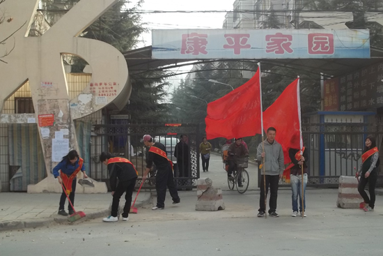 本站讯 我校青年志愿者积极响应市文明办的号召,于3月9日上午积极参加开封市“开封新区城乡环境整治帮扶”志愿服务活动,到康平家园开展义务劳动。