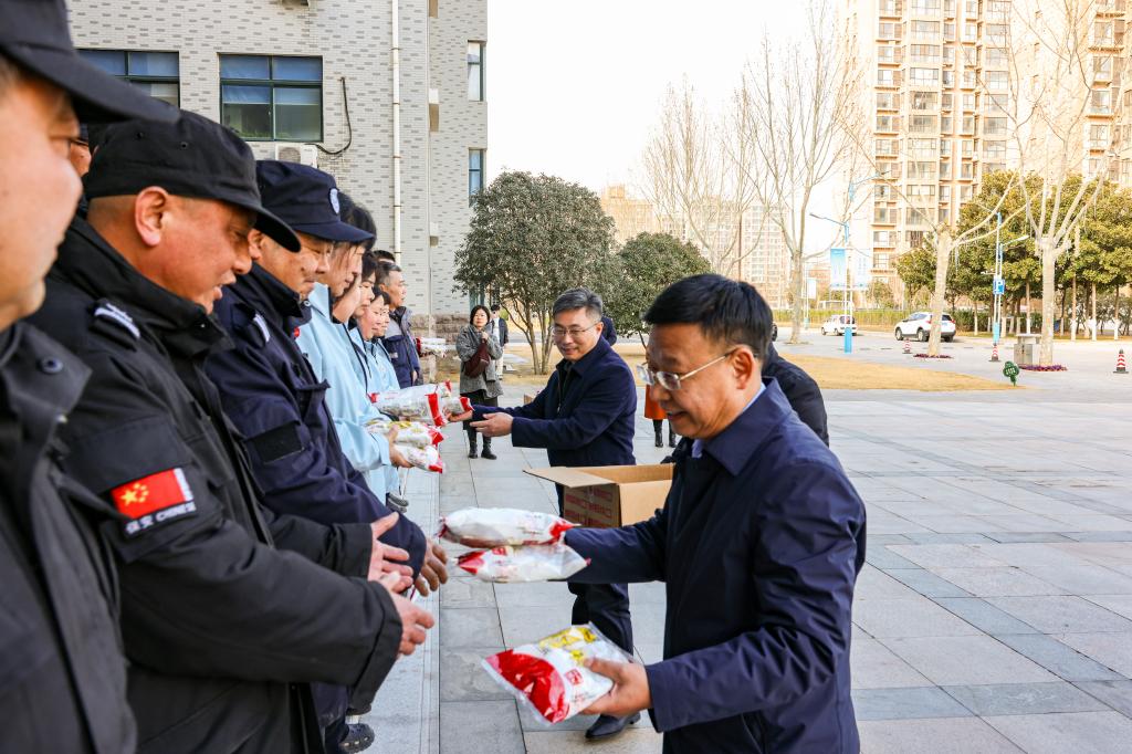 慰问中,校领导详细了解春节期间校园值守、安全保障、后勤服务等工作情况,对大家舍小家为大家、全力守护校园平安稳定的奉献精神致以崇高的敬意和衷心的感谢。
