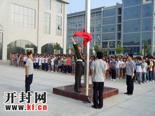 《开封网》9月1日报道:开封大学举行新学期升国旗仪式