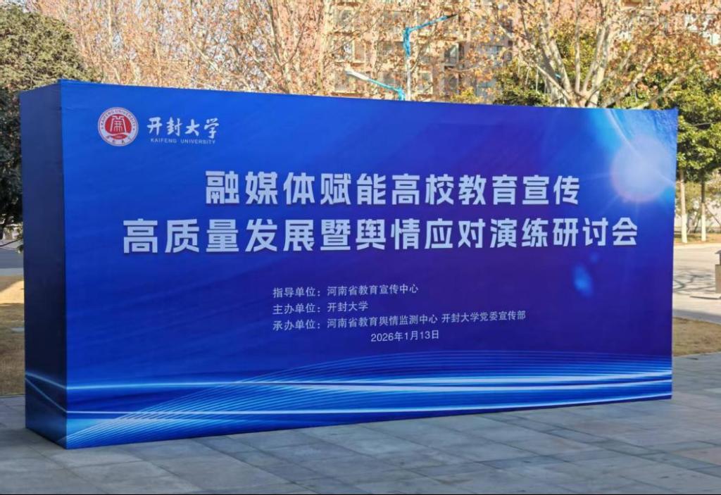 本站讯 为深入贯彻落实新时代高校宣传思想文化工作的系列部署要求,在教育数字化转型与媒体深度融合的时代背景下积极探寻高校教育宣传高质量发展与舆情风险防控的实践路径与科学方法,着力用党的创新理论培根铸魂,以社会主义核心价值观凝心聚力。1月13日,开封大学举办融媒体赋能高校教育宣传高质量发展及舆情应对演练研讨会。此次会议由河南省教育宣传中心指导,开封大学主办,河南省教育舆情监测中心、河南省高校思政课名师常素芳工作室、开封大学党委宣传部承办。