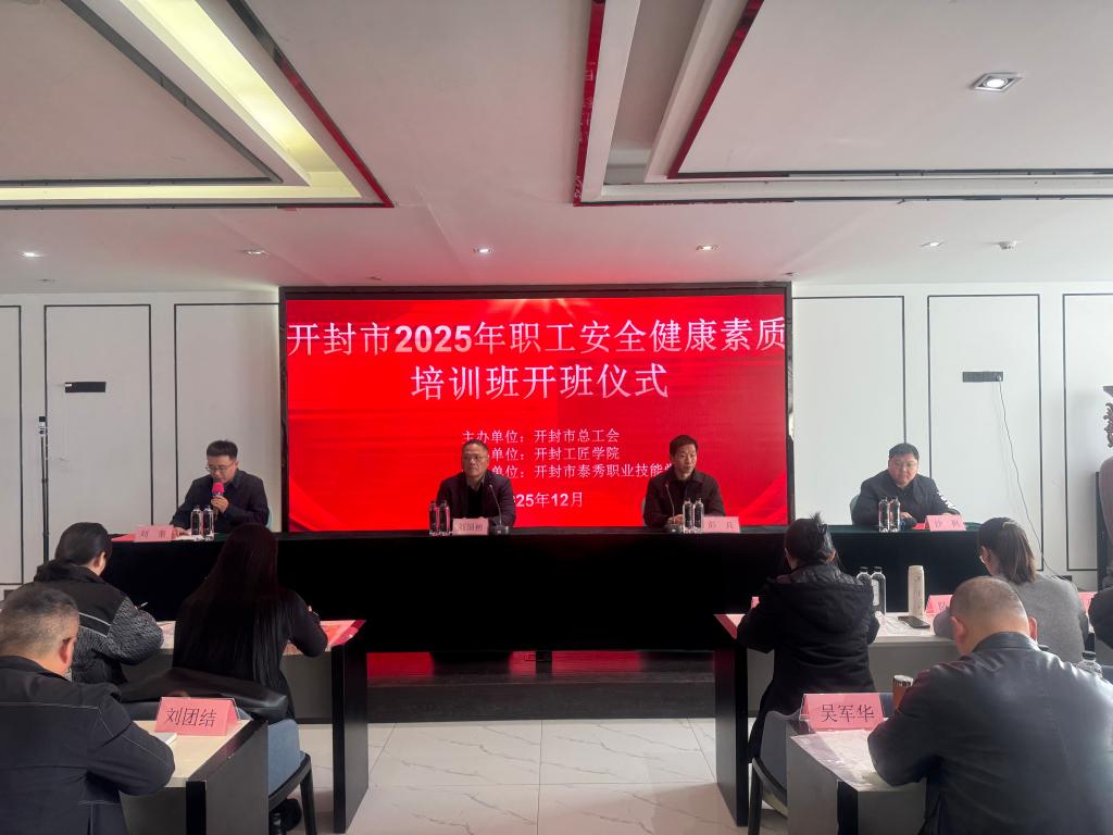 12月2日,由开封市总工会、开封大学联合主办,开封工匠学院承办,开封市泰秀职业技能培训学校协办的开封市职工安全健康素质培训班正式开班。开封市总工会党组成员、副主席刘国彬,开封大学继续教育学院副院长刘奎、副院长沙枫出席。仪式由开封市总工会劳动和经济工作部部长彭兵主持。