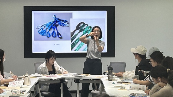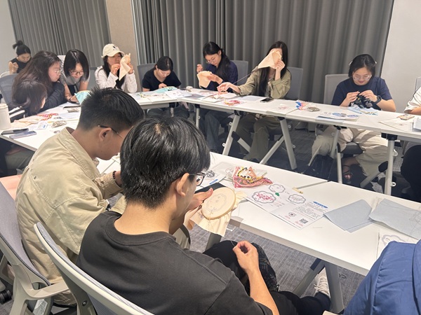 本次活动邀请了艺术设计学院庞未名老师担任主讲嘉宾,来自各院系的30余名师生共同参与了这场别开生面的非遗文化体验活动。活动现场气氛热烈,师生们穿针引线,将传统纹样与端午元素巧妙结合,在体验传统技艺的同时,也深刻感受到了中华优秀传统文化的博大精深。