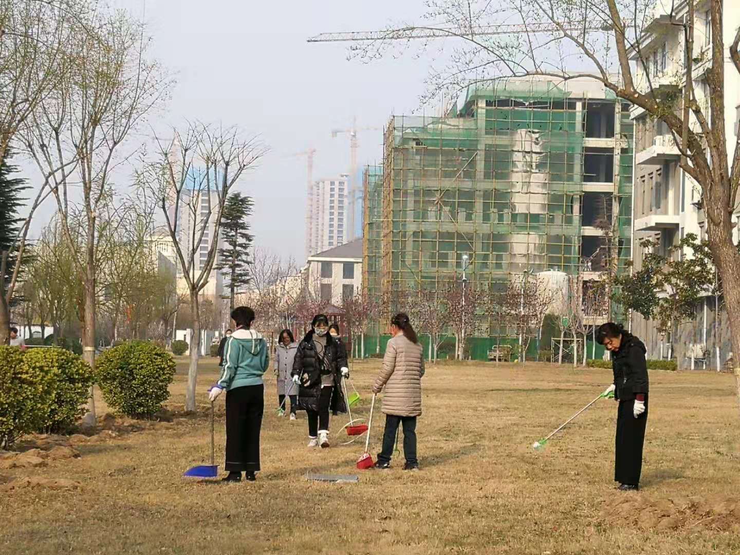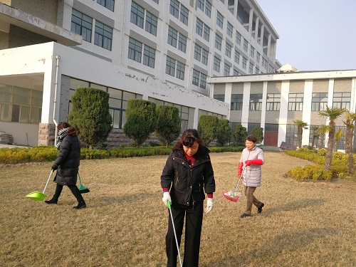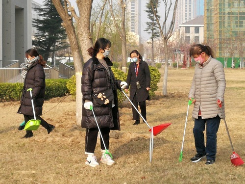 为迎接文明校园复查工作,图书馆党支部积极组织教职工对周边环境进行大扫除。