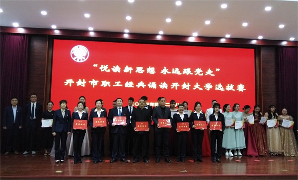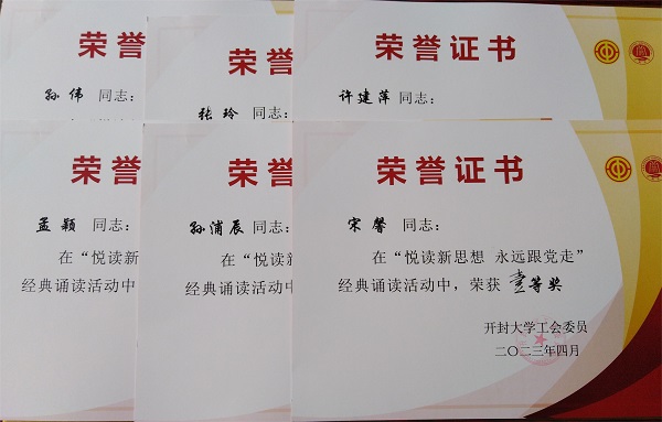 4月28日上午,图书馆分工会代表队参加校工会在行政楼第一会议厅举办“悦读新思想 永远跟党走”开封市职工经典诵读活动开封大学选拔赛。孙伟、孙浦辰、许建萍、孟颖、张玲、宋馨等六人代表图书馆分工会参加比赛。