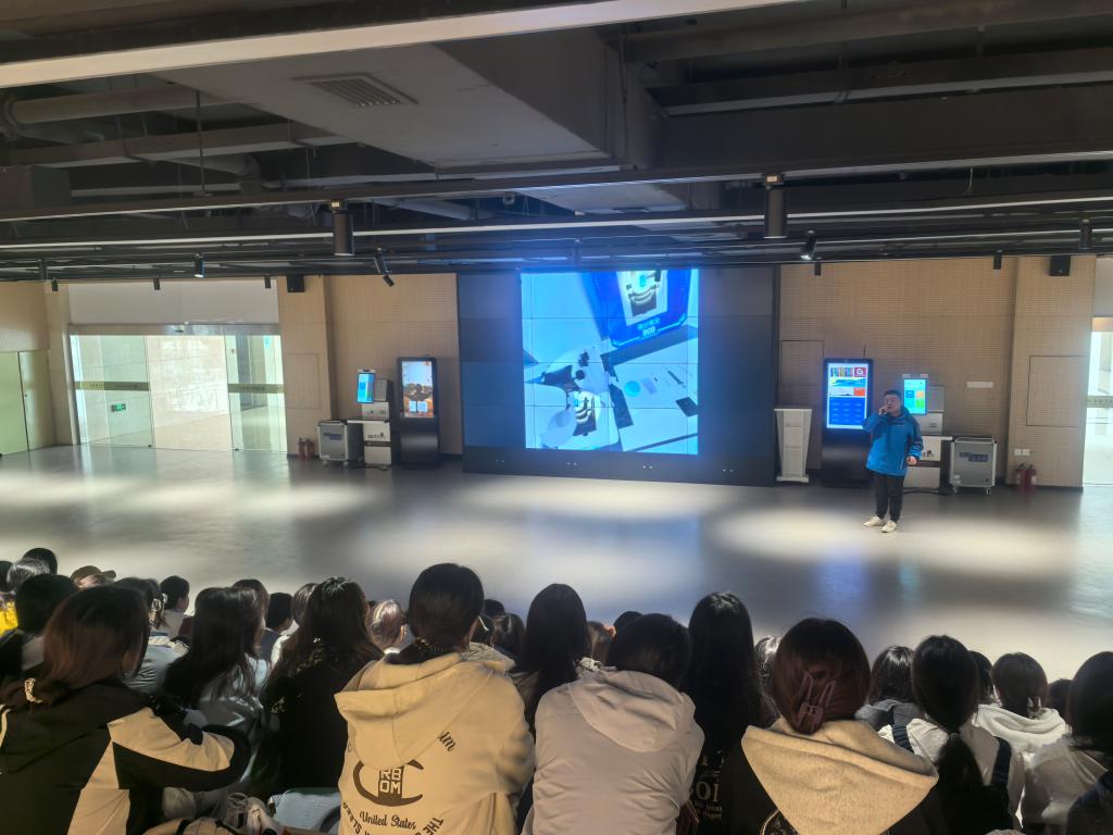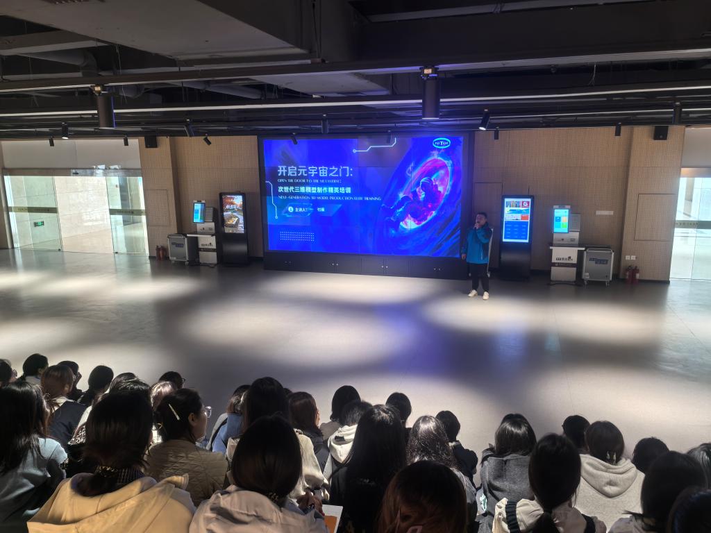 工程师付晨结合影视特效、游戏开发、虚拟现实等数字媒体领域的经典案例,详细讲解了三维建模从需求分析、概念设计到中高低模型创建,再到贴图制作,最后渲染输出的企业标准化流程。他强调,企业级建模规范不仅关乎作品质量,更直接影响制作效率与成本控制。工程师展示了企业已落地的数字产品——纳米微观元宇宙实验室,为师生打开了技术应用的新视野。