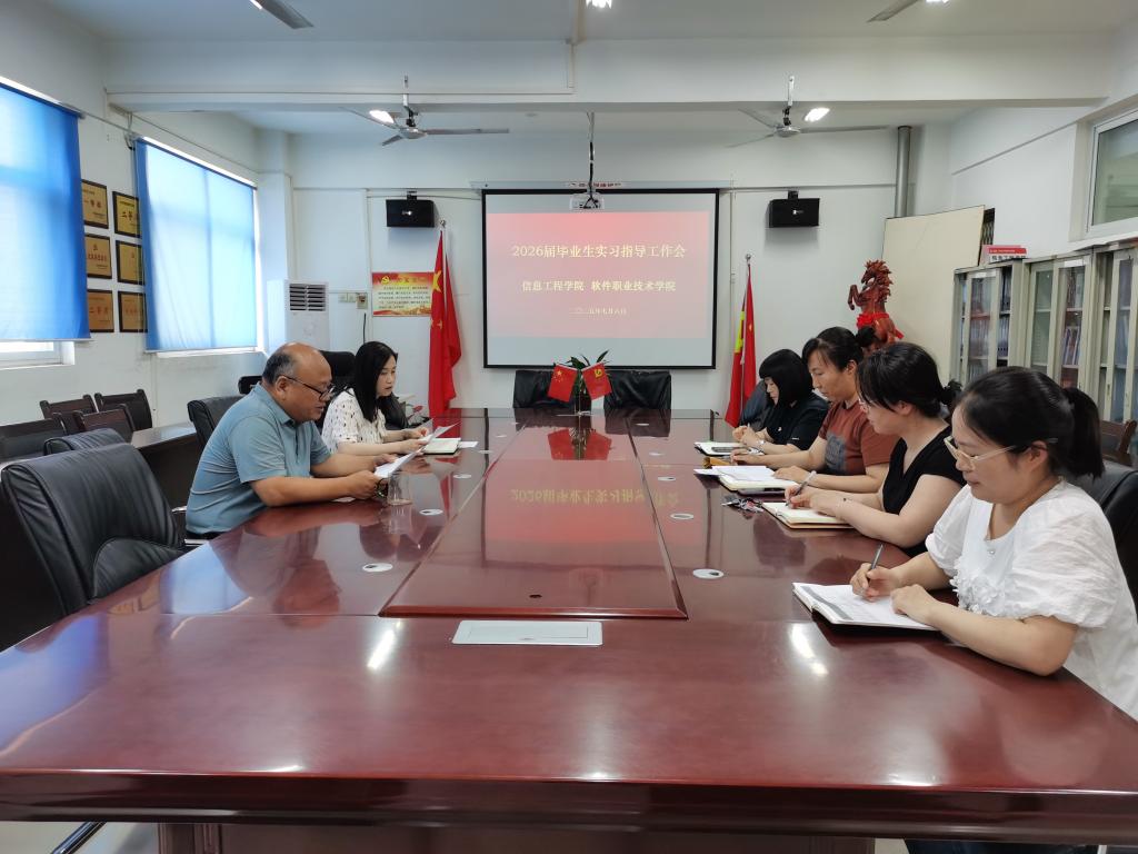 本站讯,信息工程学院2025级学生毕业实习工作部署会于2025年7月6日在3号楼312会议室召开。会议由院长张新成主持,武莹书记及全体毕业实习指导教师参会。会议重点围绕毕业实习相关注意事项展开,旨在规范实习流程、保障学生权益、提升实习质量。