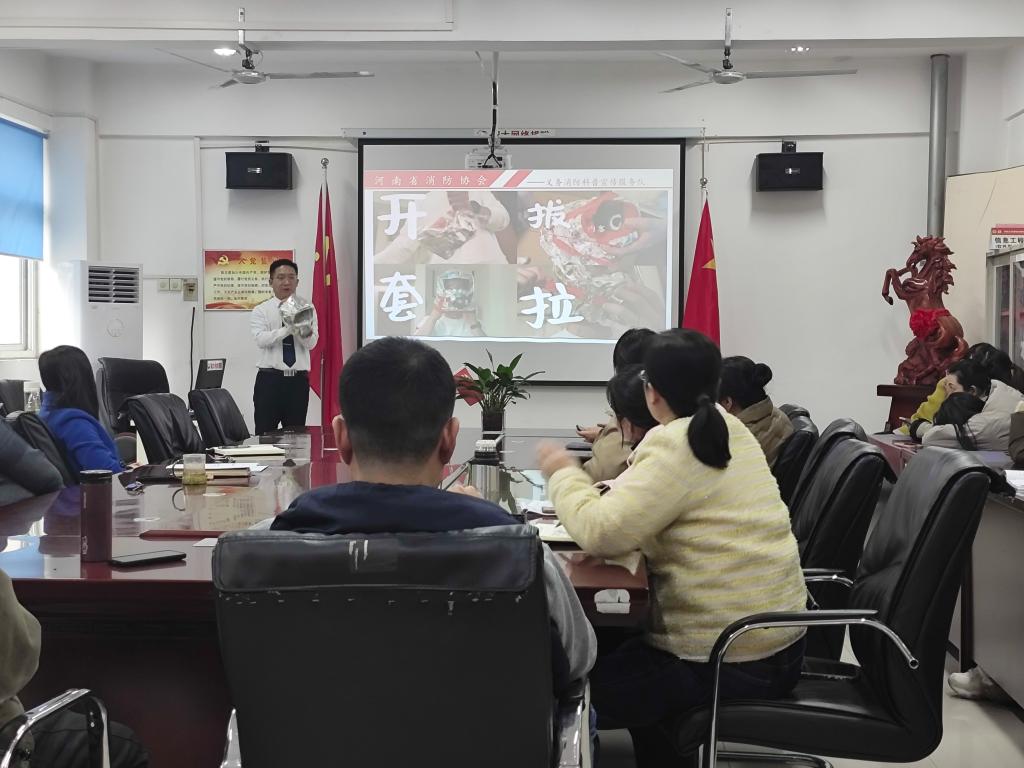 本站讯 为增强学院师生的消防安全意识,提高师生对安全事故的应急处置能力,预防和减少火灾事故发生,构建平安和谐稳定的校园环境。3月6日下午,我院特邀河南省消防协会蔡继源教员于3号楼312会议室,为全院教职工作消防安全知识培训讲座。学院领导班子成员、全体教职工参加本次讲座,此次讲座由党总支书记武莹主持。