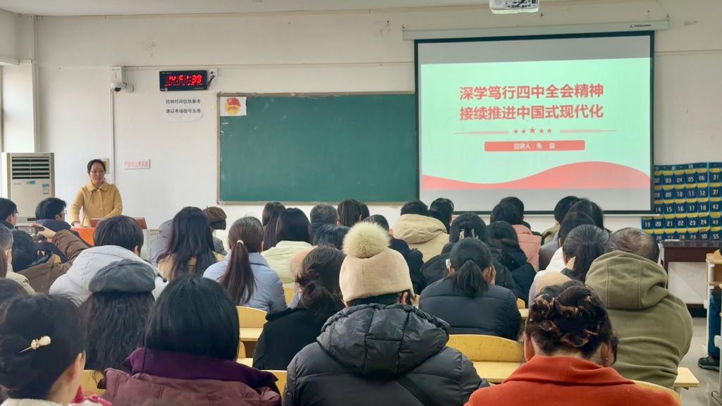 本站讯 为深入学习贯彻党的二十届四中全会精神,推动全会精神在学院落地生根,12月18日下午,信息工程学院开展深入学习贯彻党的二十届四中全会精神宣讲会。马克思主义学院朱淼教授作专题宣讲报告,学院领导班子成员,全体教职工,学生代表参加会议。宣讲会由学院党总支书记武莹主持。