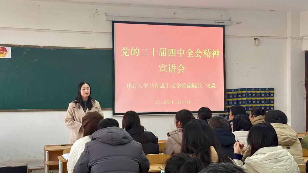 朱淼以《深学笃行四中全会精神,持续推进中国式现代化》为题,紧扣党的二十届四中全会核心要义。她以“回望十四五成就、把握十五五方向”为主线,从重大成就、时代价值、形势判断、核心要义、贯彻落实五大维度,用大量的事例和数据系统解读全会精神,既复盘了“十四五”时期我国经济社会发展的历史性成果,又剖析了“十五五”时期发展环境特征,解码中国式现代化的“十五五”行动纲领,最后号召全院师生以实干担当践行全会精神,将宏伟蓝图转化为具体行动,在服务国家发展大局中彰显学院担当。