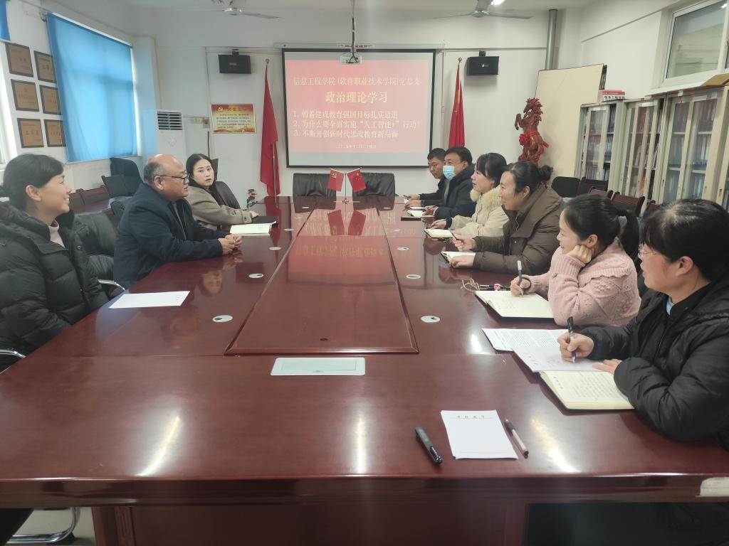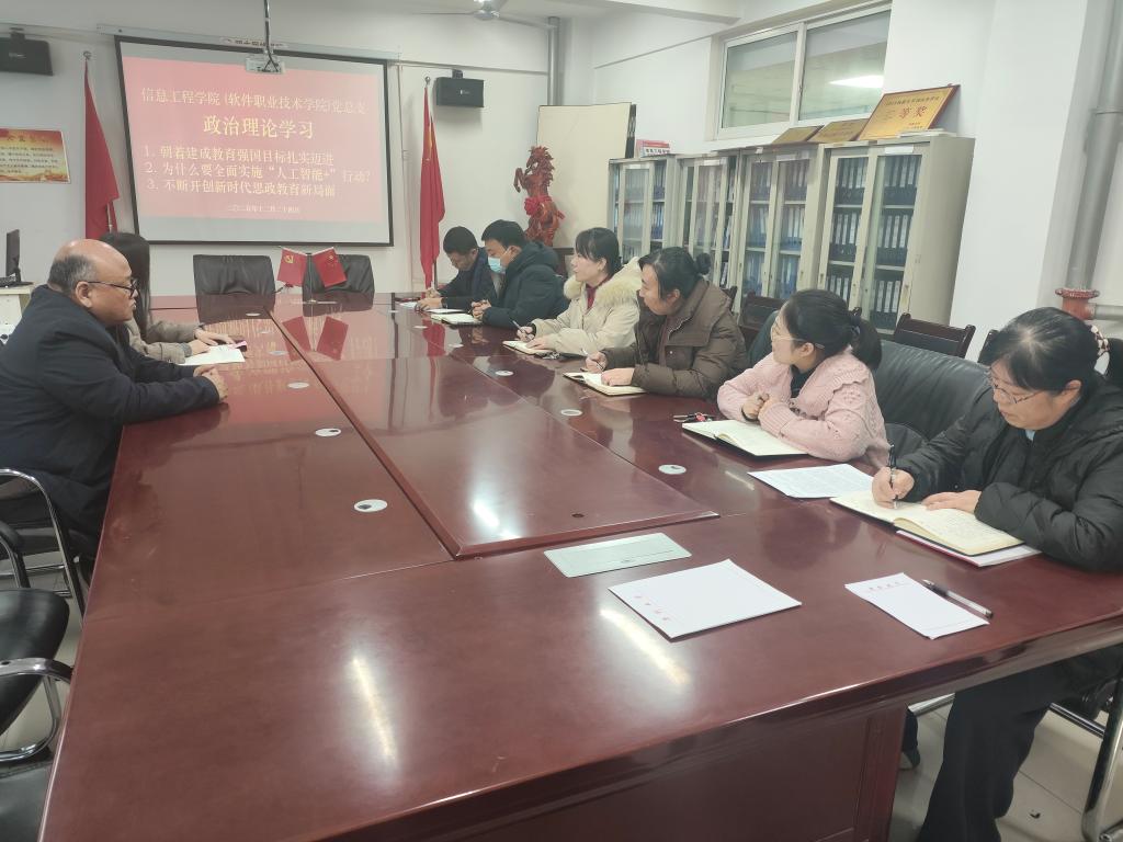 本站讯 12月24日,信息工程学院党总支于3号楼312会议室召开政治理论学习会议,党总支委员及各支部书记参会。会议由党总支书记武莹主持。